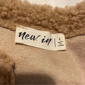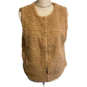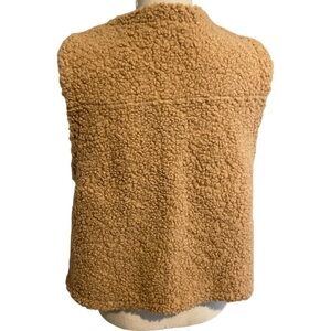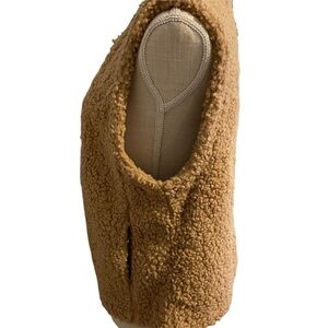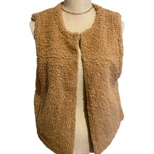 This tan Sherpa vest will compliment any outfit and add that something cool and unique to top it off. 4 invisible clasps evenly spaced down to close all the way or just partial.