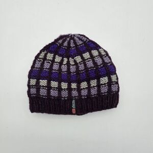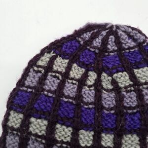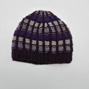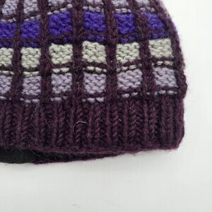 Sherpa Wool Hat Beanie Purple Knit Cap Winter Fleece Lined Fair Isle Skull Cap