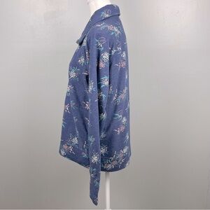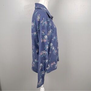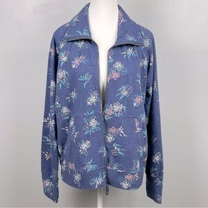 Sherpa full zip recycled cotton poly blend floral sweat jacket, size large.