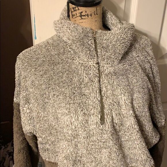 Sherpa pullover with pockets and zipper in middle as pictured new never worn boutique brown white size small Boutique clothing priced 40 or above buy1 get 2nd 1. 30% off