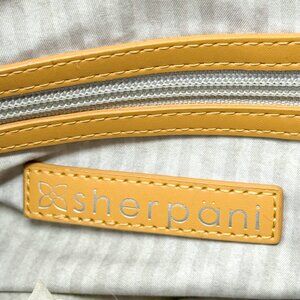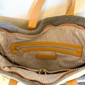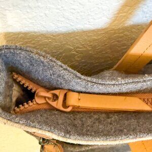 Sherpani Faith Messenger Crossbody Bag Gray Wool Tan Vegan Leather Soft Utility