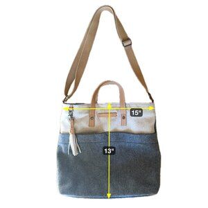 Measures approx. 15" W x 13" H x 3" D (crossbody strap drop adjustable 13" - 26")