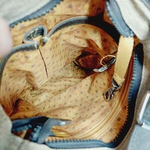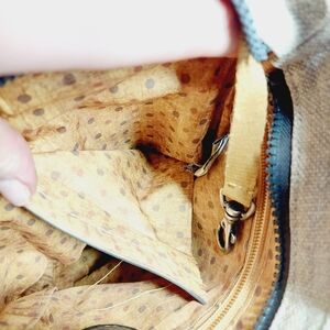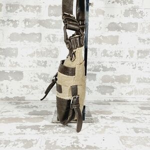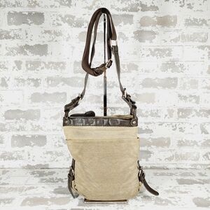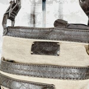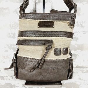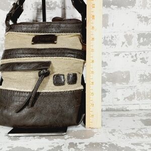 Sherpani Luna Brown Tan Leather Canvas Zip Pockets Crossbody Bag 0820