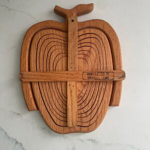 Sherrell Lewis Beautiful Folding Solid Wood Fruit Bowl Basket Apple Shape