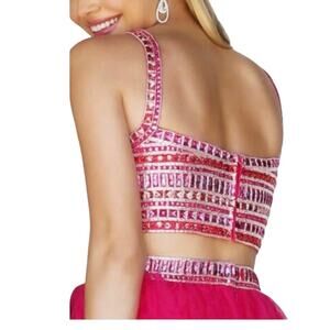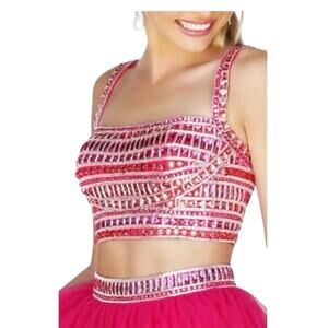 Sherri Hill 2Pc Beaded Crop Tank & Beaded Mini Skirt In Fuchsia Size 0