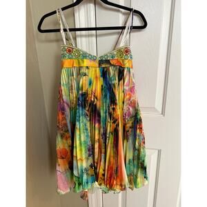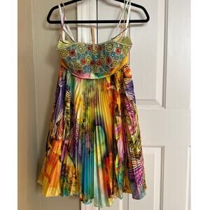 Sherri Hill Beaded Digital Print Pleated Dress 4 Homecoming Party