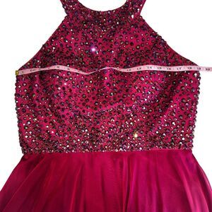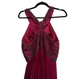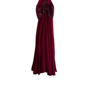 Sherri Hill Beaded Halter Back Fit & Flare Burgundy Ball Gown – Size 18