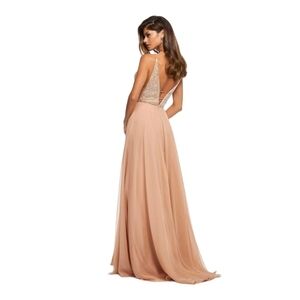 Sherri Hill Beaded Plunging V Neck Chiffon Gown in Nude Pink Color 52589 NWT