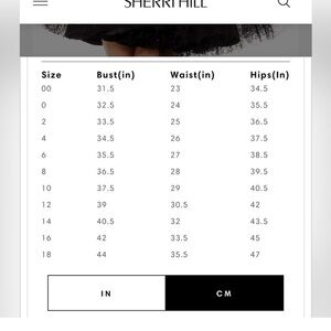 Please see measurements and Sherri Hill chart to compare to your own measurements to ensure fit.
