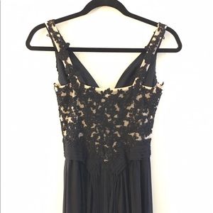 Worn only once and dry cleaned. The shoulder for my chest size (my bra size is 32B if that helps) and skirt length has been altered. It reaches the floor with 3 inch heels on (I am 5'6).