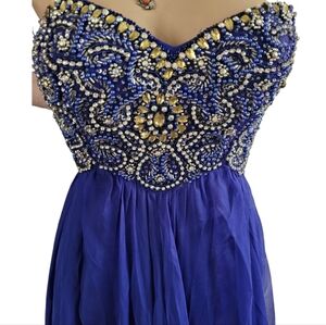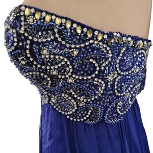 brilliant blue lightweight skirt with crystal rhinestones with blue beading on entire bodice.