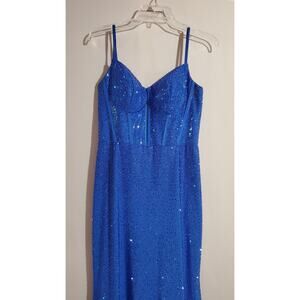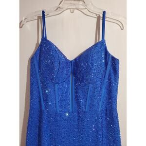 Sherri Hill Corset Rhinestone Maxi Gown Womens Size 8 Prom Homecoming Dress Blue
