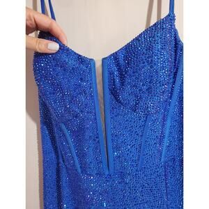 Sherri Hill Corset Rhinestone Maxi Gown Womens Size 8 Prom Homecoming Dress Blue