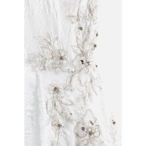 Adorned with crystal and pearly appliques, this dress has just the right amount of soarkle that radiates grace and beauty