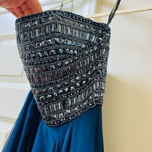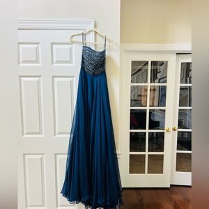 Stunning Sherri Hill gown in a rich navy shade. Perfect for formal occasions with beautiful beading. Size 00 and like new!