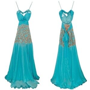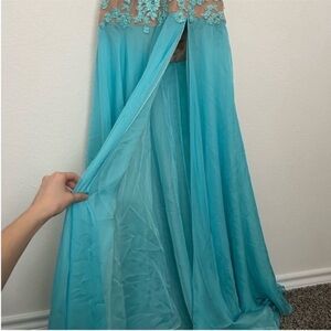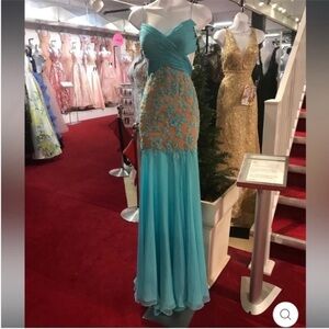 Sherri Hill Floral Beaded Floral Ruched Tulle Prom Dress Aqua Blue 11138