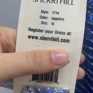 New with tags, Sherri Hill formal/evening dress. Size 16 Style 1714 in color Sapphire. smoke free and pet free environment,