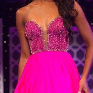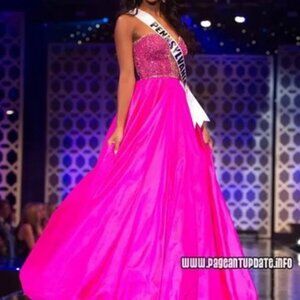 This fuschia strapless, scalloped Sherri HIll ball gown is perfect for your next pageant, prom, or special event! Worn twice, once at Miss Teen USA 2015 and during the Miss Pennsylvania Teen USA 2016 pageant, this gown is a show-stopper with the right amount of bling and extravagance to have all eyes on you!