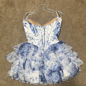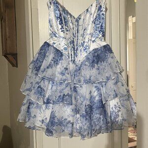 Sherri Hill Style #57295 Blue and White Floral. Worn twice for about 5-6 hours each time. Great Condition. Size 8