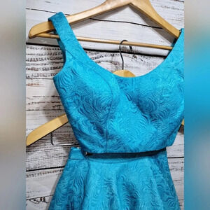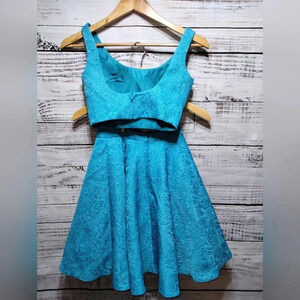 Sherri Hill Julane Teal Two-Piece Homecoming Dress Floral Embossed Size 00