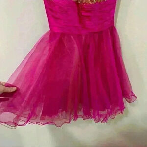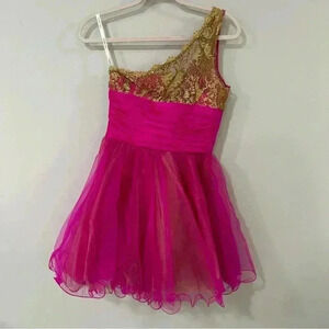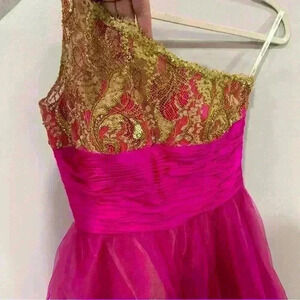 Sherri Hill One Strap Gold Hot Pink Babydoll Tiered Mini Prom Homecoming Dress 4
