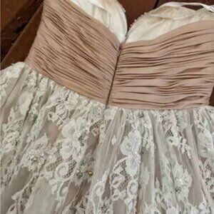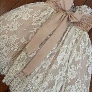 Sherri Hill Pink Strapless White Lace Hoco BabyDoll Dress Bow Short Mini Size 6