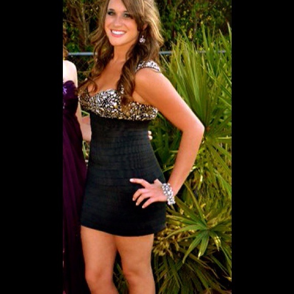AUTHENTIC Sherri Hill little black bandage dress with gorgeous gem detailing. Bandage-like stretch makes this dress form fitting to rock your curves! This show-stopper is great for prom, weddings, or a formal evening! Only worn once!