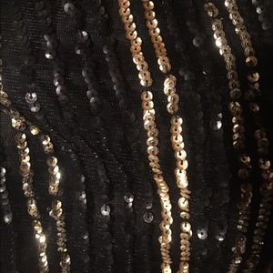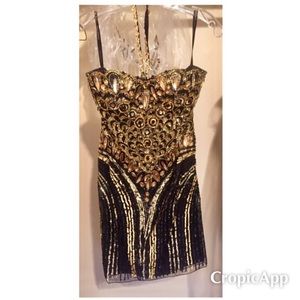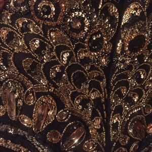 This Sherri Hill Prom Dress is made of gold and black jewels and sequins. Neck strap is easily removed for a strapless look. Only worn once and in great condition.