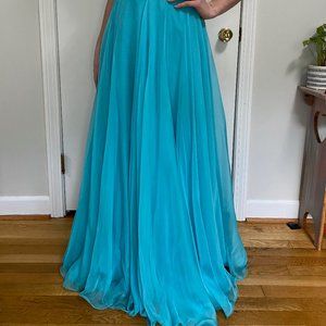 This is a Sherri Hill long blue prom dress with a gemstone bodice and chiffon, multi-layered skirt. It makes a fabulous prom dress for anyone! It has been altered to fit someone who is 5'2". I usually wear a size 4 in dresses. Worn once - originally paid $400.