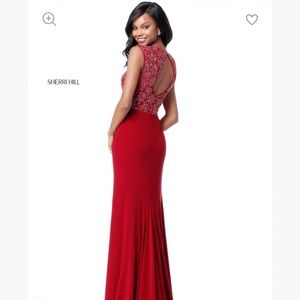 Fitted jersey gown with beaded bodice and cut out back; worn once; size 0; professionally altered for 5’2 height