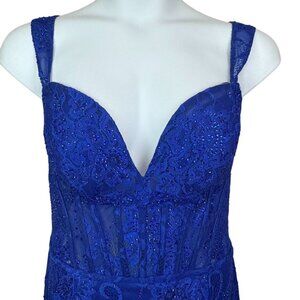 Sherri Hill Royal Blue Lace Corset Gown Open‑Back Prom Dress Size 16 NWT