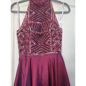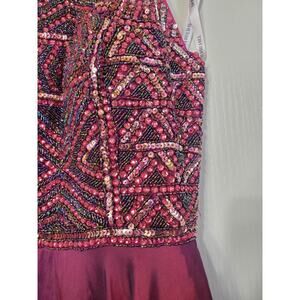 Sherri Hill Ruby Iridescent Beaded Taffeta A-Line Prom Formal Dress, Size 2