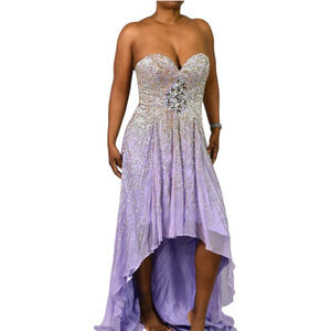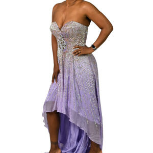Sherri Hill Silk Dress Purple Sequin Sweetheart Hi Low Strapless Gown Formal 8