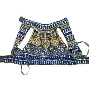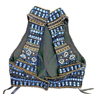 Sherri Hill Size 0 Beaded Cropped Halter Top Bustier Black Blue Gold Crystals
