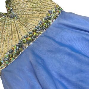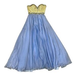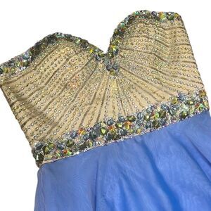 Sherri Hill Sky Blue Strapless Jeweled Periwinkle Evening Gown 8