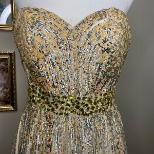 Sherri Hill Sparkly Show Stopper Strapless Gold and Cream Evening Gown Sz 4