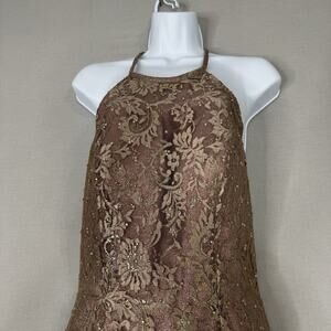 Sherri Hill Womens Dress 4 Pink Lace Backless Scrunch Halter Gown Prom Formal