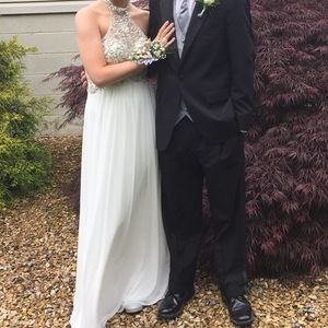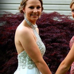 Beautiful white 2015 Sherri Hill prom dress! Has a halter neck piece and a low back. Only worn once. I paid $600 for it.