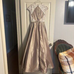 Stunning Sherri Hill style 50843 in Gold/Beige, size 8.