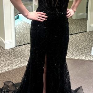 Black off the shoulder Sherri Hill gown style 56101 size 10 new