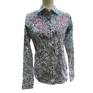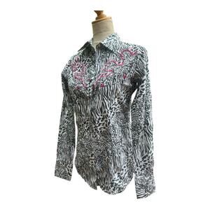 Sherry Cervi Animal Print Pink Embroidery Pearl Snap Shirt NWT S Rodeo Western