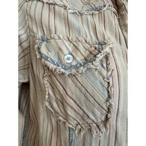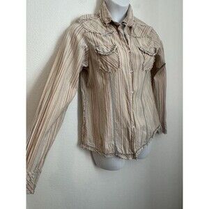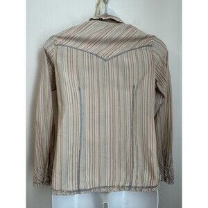 Sherry Cervi Western Shirt Long Sleeve Button Up Fringe Beige Stripe Women L