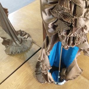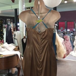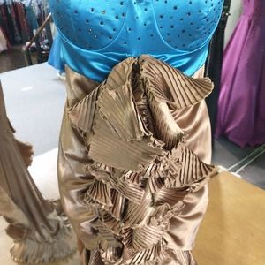 Pleated Ruffele down front and train chocolate with Turquoise bodice and lining