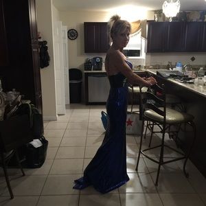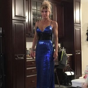 NWT sherry hill beautiful sequin gown, size 4, I bought 2 gowns for my sons wedding and although I love this dress it's to much for church lol , my loss your gain, no alterations at all , it's royal blue with black wide panel in front,