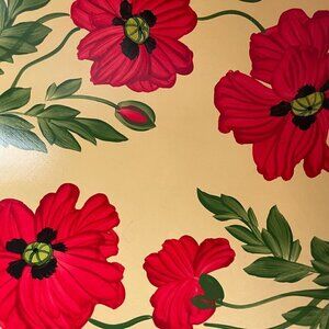 Sherwood Forest Red Opium Poppies Hand Painted Check Rim Maple Wood Salad Bowl