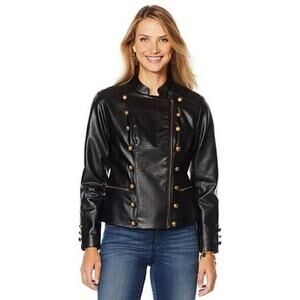 Sheryl Crow Faux Leather Military Jacket-Crown (3X)
