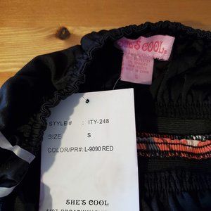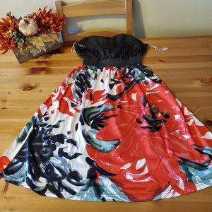 She's Cool - Women's Black Red Floral Strapless Semi Sweetheart Neck Mini Dress