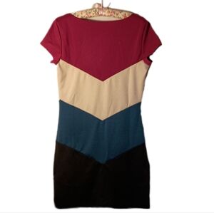 NWT She's Cool Women's Sheath Dress V-Neck Colorblock Short Sleeve Stretch Knit