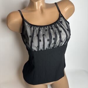 She’s Preference Black Mesh Floral Embroidered Top Side Zip Goth Coquette Y2K