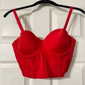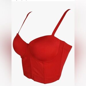 Elegant red bustier top perfect for any occasion. Features a flattering fit and stylish design. Never Worn, Removable Straps XXL-On Bust:36-39inch(92-100cm), Under bust:32-34inch(83-87cm), Waist:31-32inch(80-